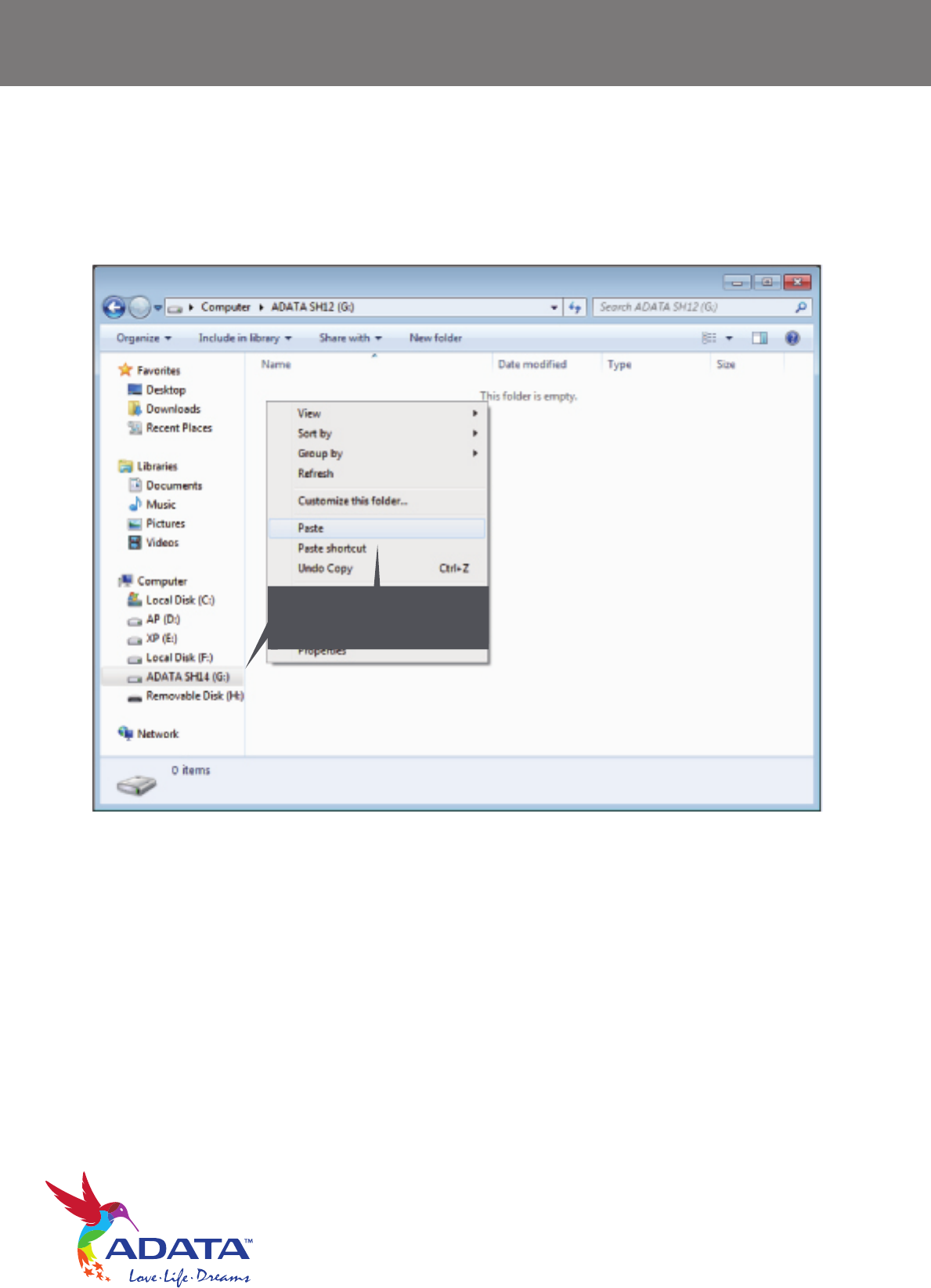 Right click on the ADATA G: